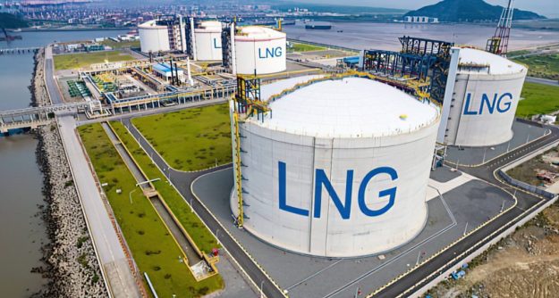 LNG is natural gas (predominantly methane, CH4, with some mixture of ethane, C2H6) that has been cooled down to liquid form for ease and safety of non-pressurized storage or transport. It takes up about 1/600th the volume of natural gas in the gaseous state at standard conditions for temperature and pressure.